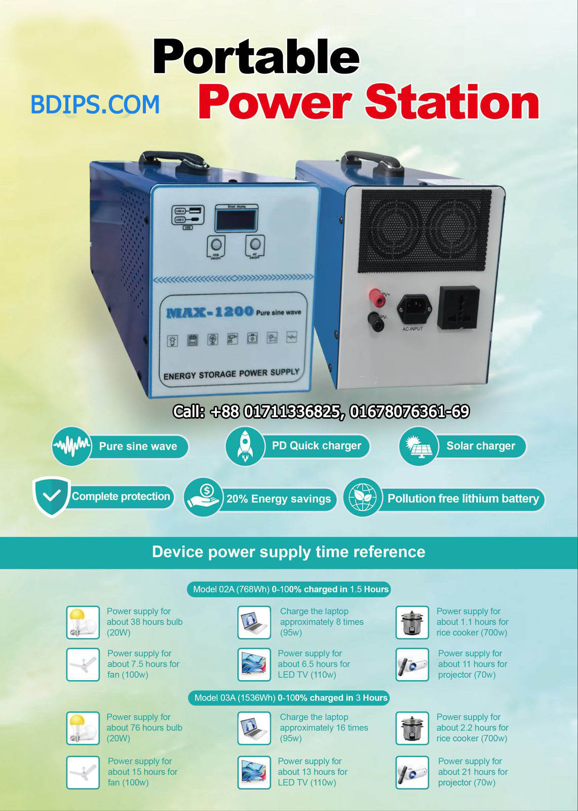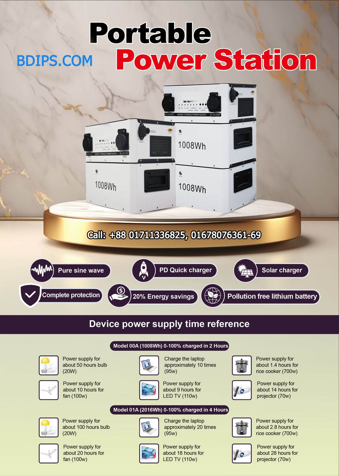 IPS with Portable Lithium Battery, Price (3 Years Warranty) | ||||||