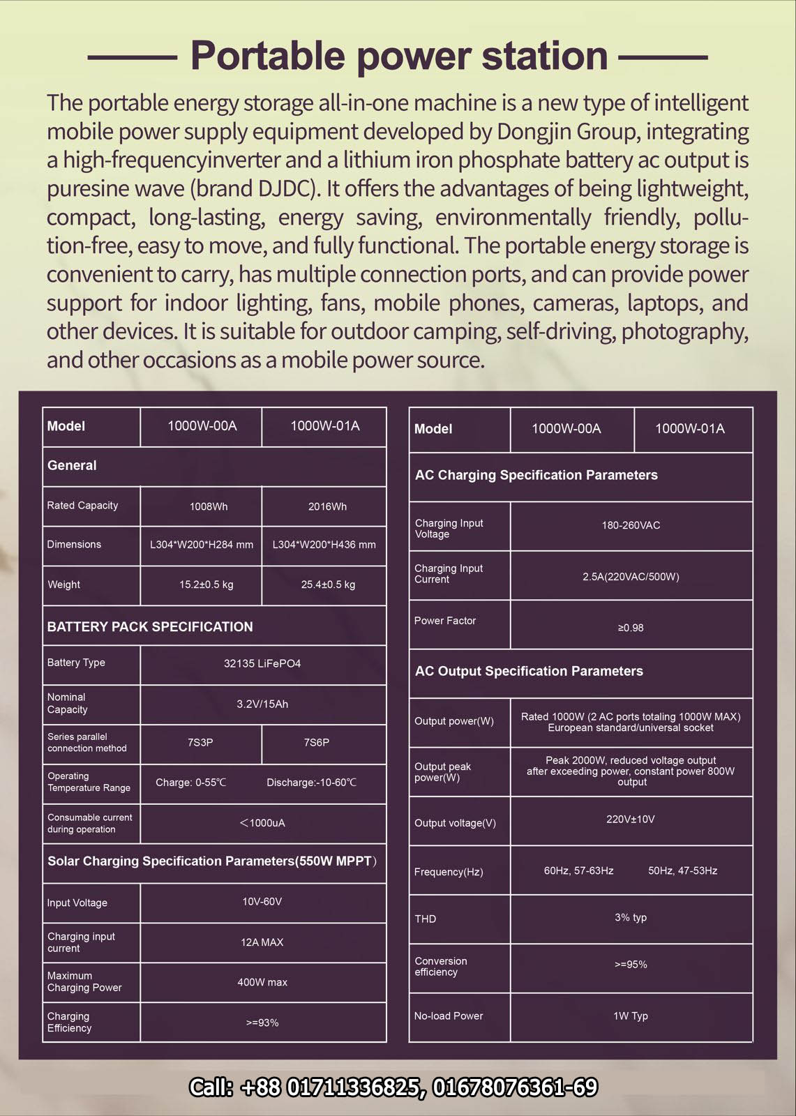 S/LNo | Model | Voltage | Watt | Capacity (Wh) | Price(TK) | Warranty |